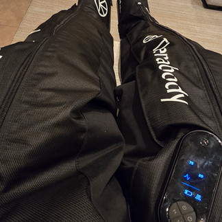 The quiet room is the perfect place to unwind with leg‑compression boots, a red‑light mask, or a good book.