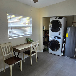 To the left, we found a laundry room, a bonus room that could easily double as an office, a closet, and the primary bedroom with an ensuite bathroom and direct access to the pool. To the right, there was a bedroom with two twin beds (ideal for our daughters), a shared bathroom, and another bedroom with a full‑size bed — also with doors leading straight to the pool. The layout worked beautifully for our group.